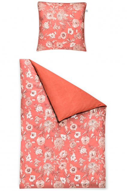 Prémiová saténová sada povlečení – přikrývka 140 x 200 cm a polštář 70 x 90 cm. Z obou stran cíchy je květinový motiv. Obě strany polštáře mají květinový vzor.